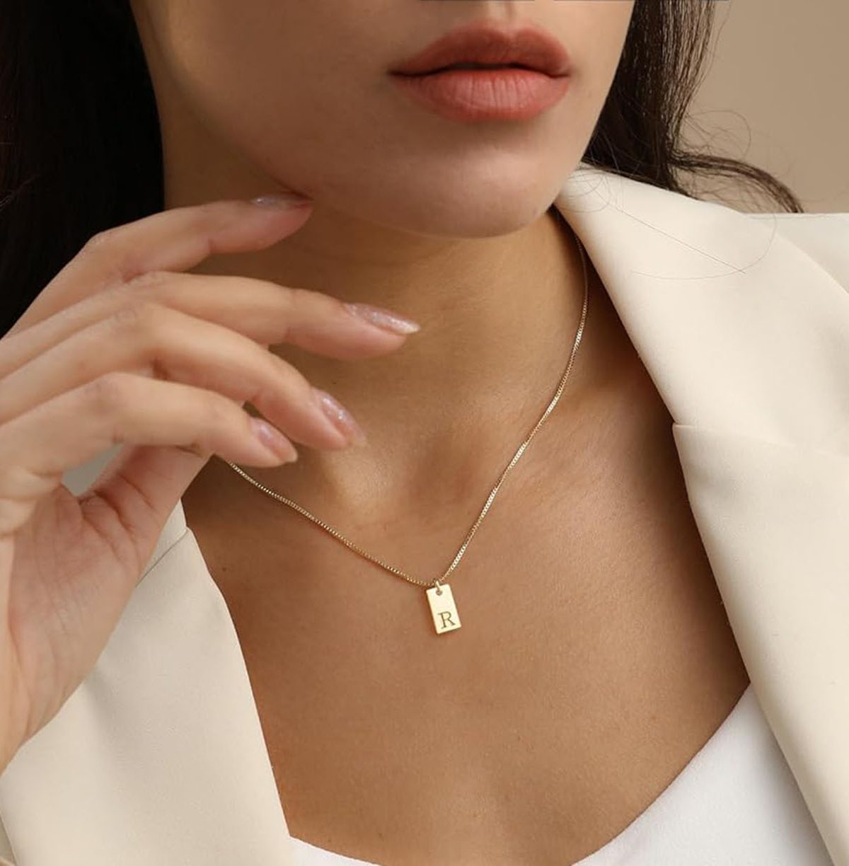 A Unique Sparkle: 14K Gold Plated Initial Necklace and Personalized Initial Pendant
